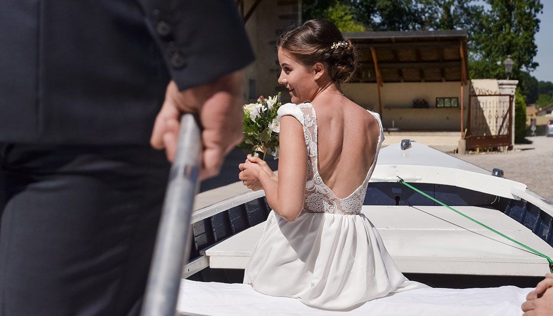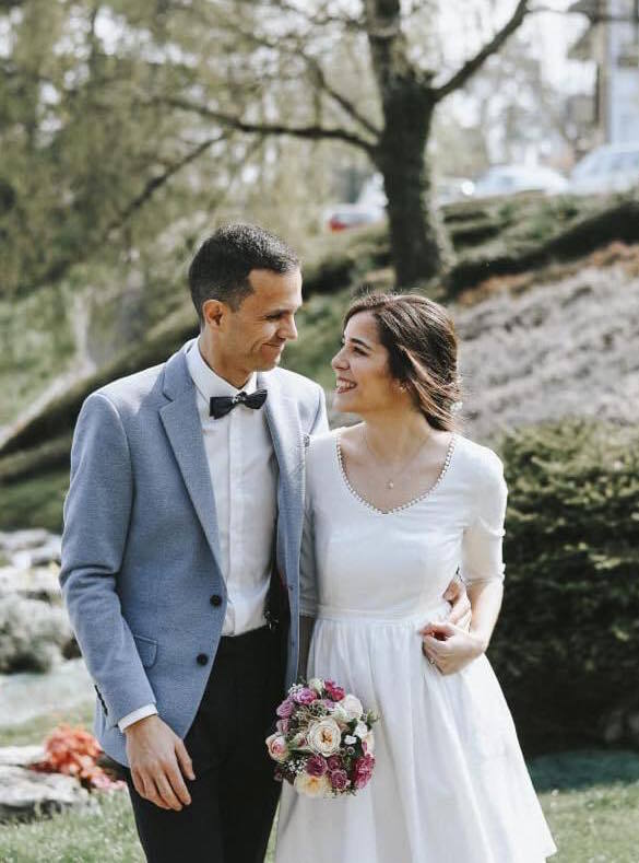 A white skirt and a lace crop top, the perfect look for a bohemian and modern wedding dress. This unique piece has been hand sewn with the greatest care. The very delicate lace comes from Paris and the skirt is cut in a circle for more movement and fluidity. All you have to do is go dancing!