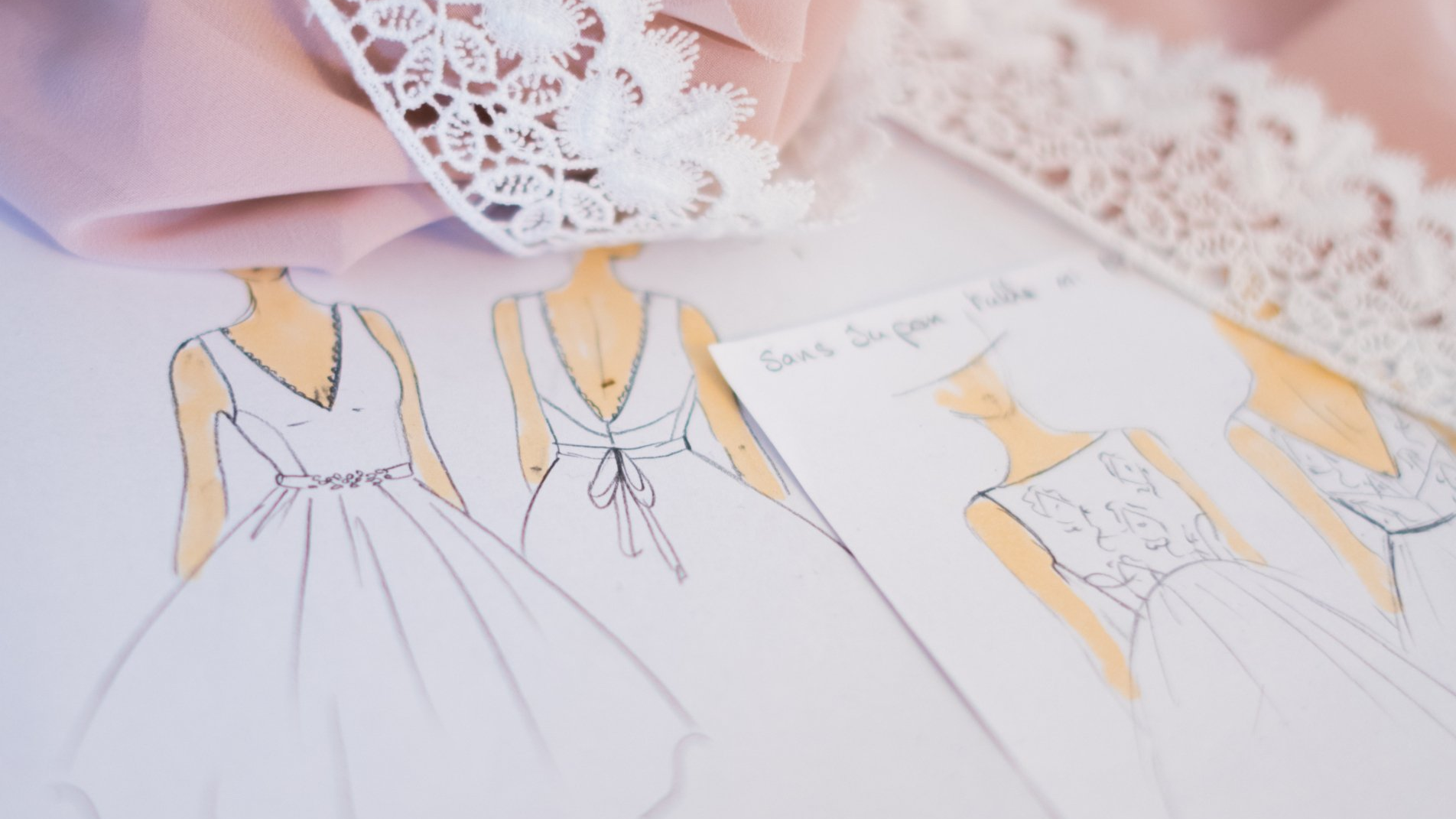 Then comes the drawing stage where I put your ideas and our discussions into images to create the wedding dress of your dreams.