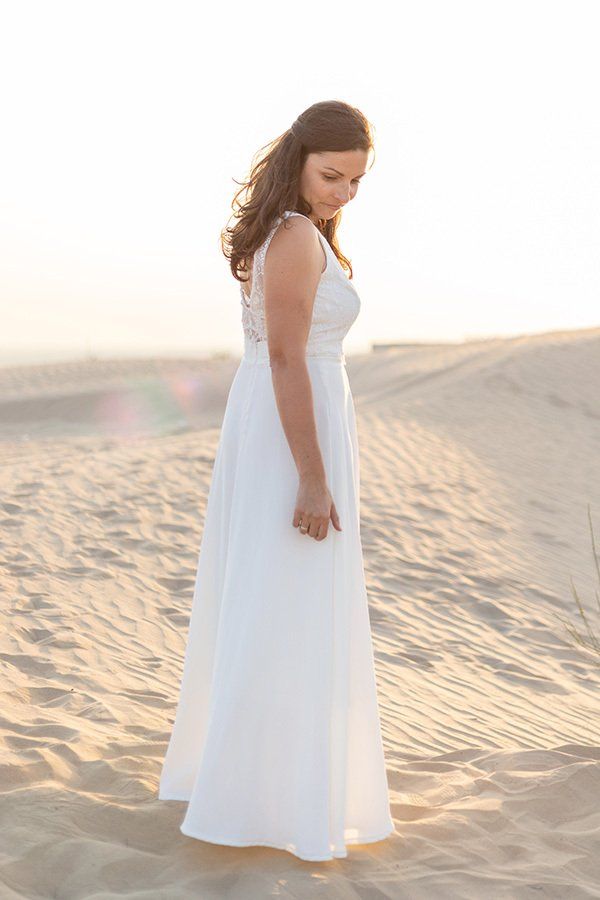 Pour ces renouvellements de vœux de mariage Stéphanie a choisit une de mes créations unique. On ne dirait pas comme ça mais cette robe de mariage civil se compose en fait d'un top et d'une jupe. Une solution très chouette pour pouvoir reporter votre robe de mariée une fois la cérémonie terminée. Avec un jean ou un top en couleur vous aurez de nombreuses occasion de remettre cette création.